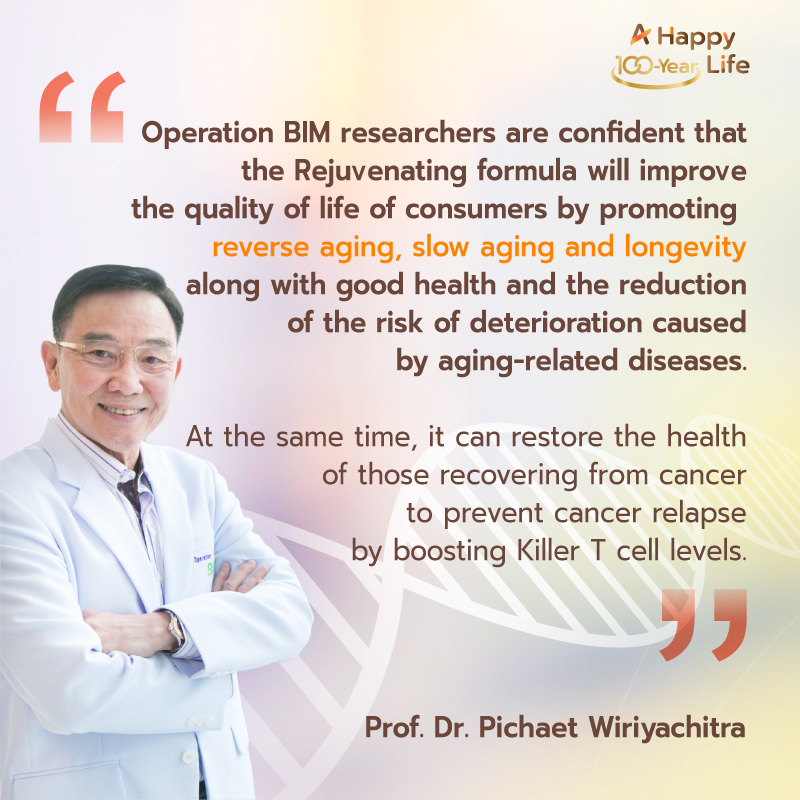 “Operation BIM researchers are confident that the Rejuvenating formula will improve the quality of life of consumers by promoting reverse aging, slow aging and longevity along with good health and the reduction of the risk of deterioration caused by aging-related diseases.